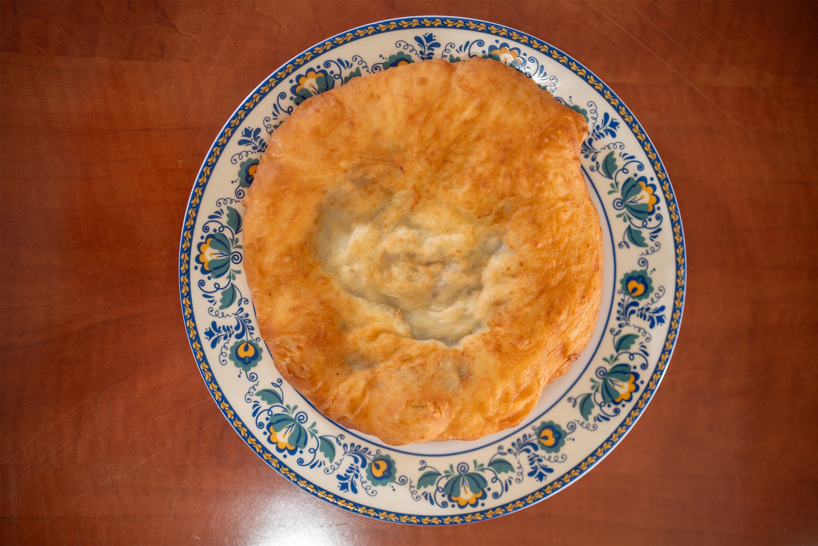 beef, onion, herbs, soft fried dough